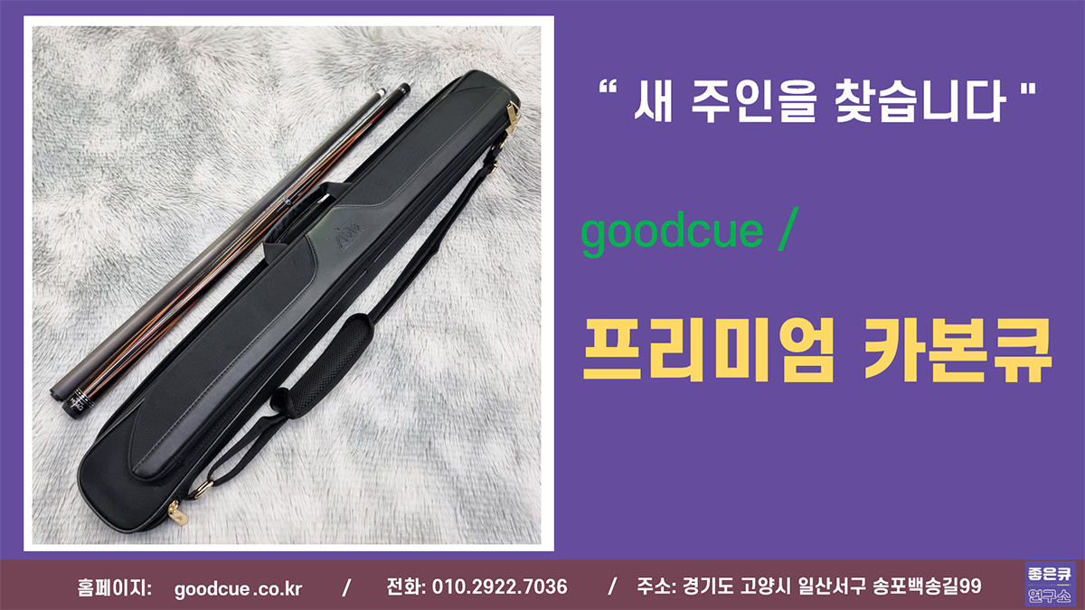 새주인을찾습니다_goodcue_프리미엄카본큐.jpg 457.64 KB ■ 시연영상 youtube:CAz06JpHx_Q ■ comment - 구성: 상대1, 하대1, 큐가방- 판매가, 무게, 길이 등 상세정보는 아래 링크http://goodcue.co.kr/item/1430